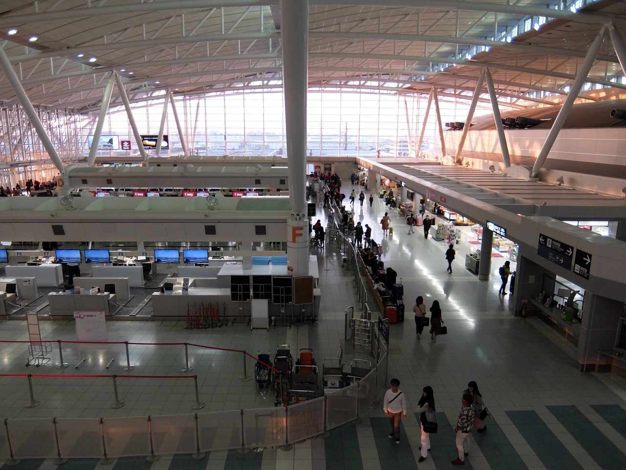 日本国内でも大きいほうの国際線空港。免税店もしっかりしています。羽田空港の国際線ターミナルのような雰囲気です。さすがアジアの玄関ですね。とてもきれいですが、アジア系の観光客が多く、混雑しているかなと思います。