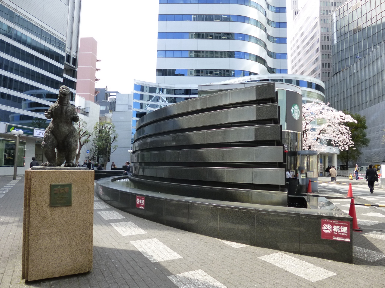 日比谷シャンテのゴジラ像は、欧米系の観光客には人気で、日中は写真撮影スポットになっている事が多いです。