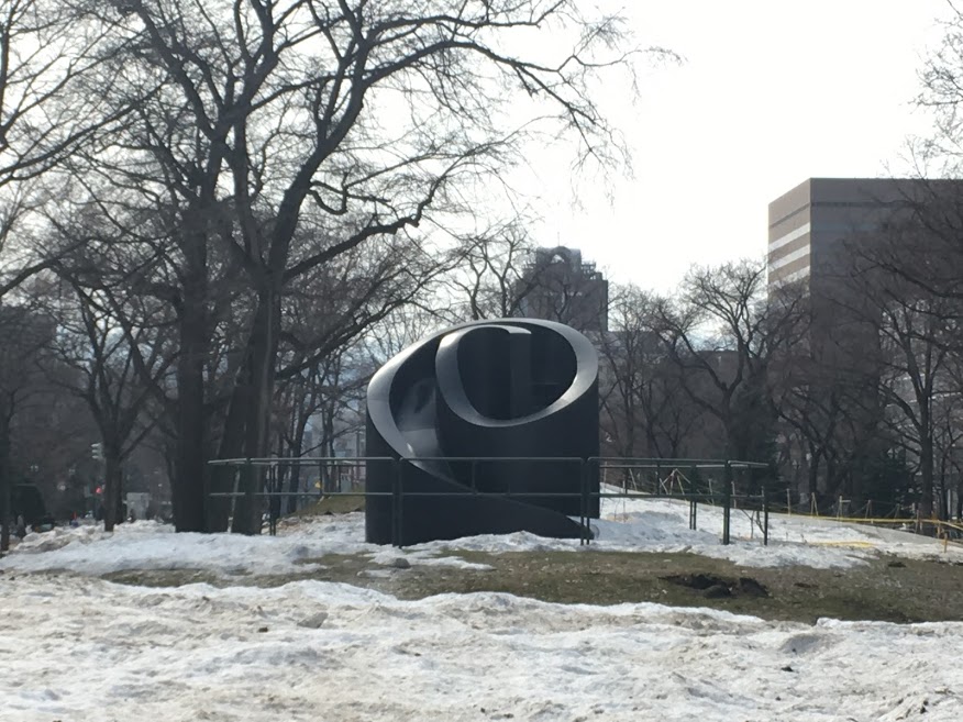 日本人・アメリカ人ハーフの彫刻家、イサム・ノグチの遊べる彫刻。真っ黒なすべすべとした石でできた、巨大なすべりだい。夏は子供だけでなく、大人も遊ぶことができるが、冬の間は使えない。4月の雪解けの頃に通りかかったが、まだ柵があって、近づけなかった。