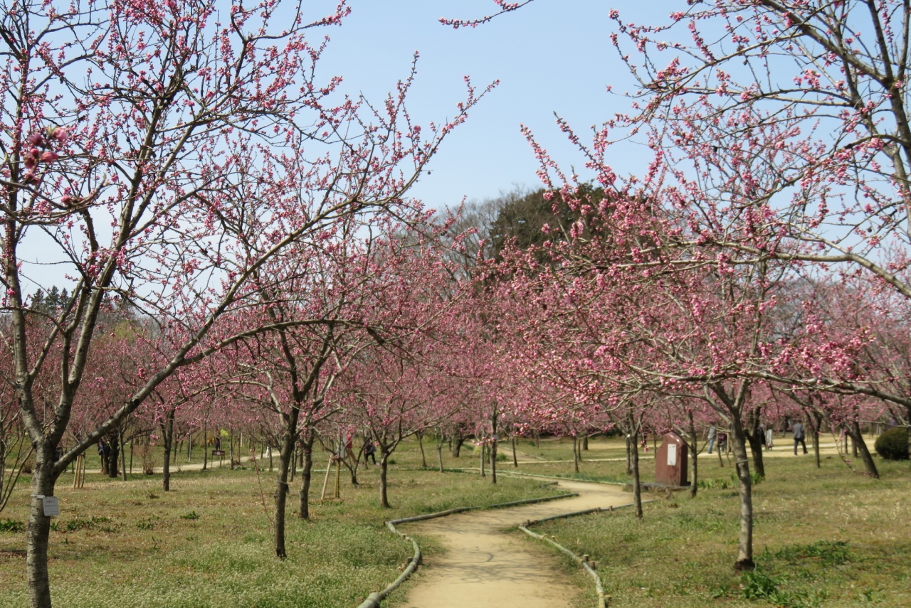 とても広い公園です。桃まつり初日に行ってきました。無料開放されていた市役所の駐車場から歩いて10分位でした。桃は五分咲きでしたが十分きれいで楽しめました。イベント開催中は屋台も沢山あって賑やか。公園内には遊覧船や気球もあり、気になりましたが気球は風が強くて体験不可でした。