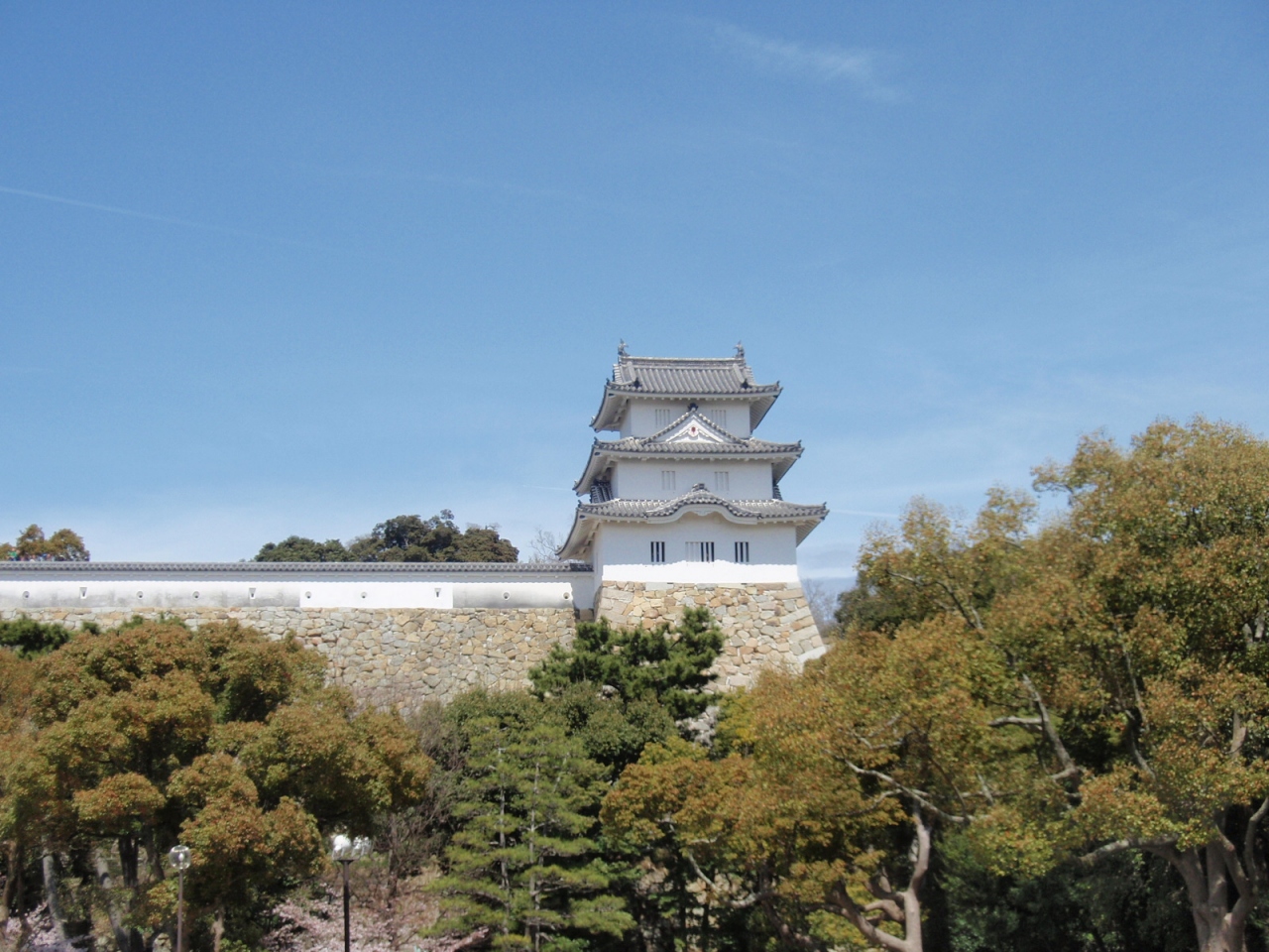築城1620年、小笠原忠真が叔父本多忠政の指導を受け築城。その後の城主は本多氏、大久保氏、松平氏である。本丸に御殿を築き、四隅に櫓を配し、天守閣は建てられなかった。正門は明石駅すぐ北にありアクセスはよい。宮本武蔵が設計したといわれる武蔵の庭園から剛ノ池岸に出、池を反時計周りに周遊する。こちらの桜は5分咲きで、まあまあの観桜。欲をいったらきりがありません。約2時間弱の観桜散策であったが、満足できる観桜でした。独身寮が公園すぐ近くにあったので約50年ぶりのなつかしい園内散策でもありました
