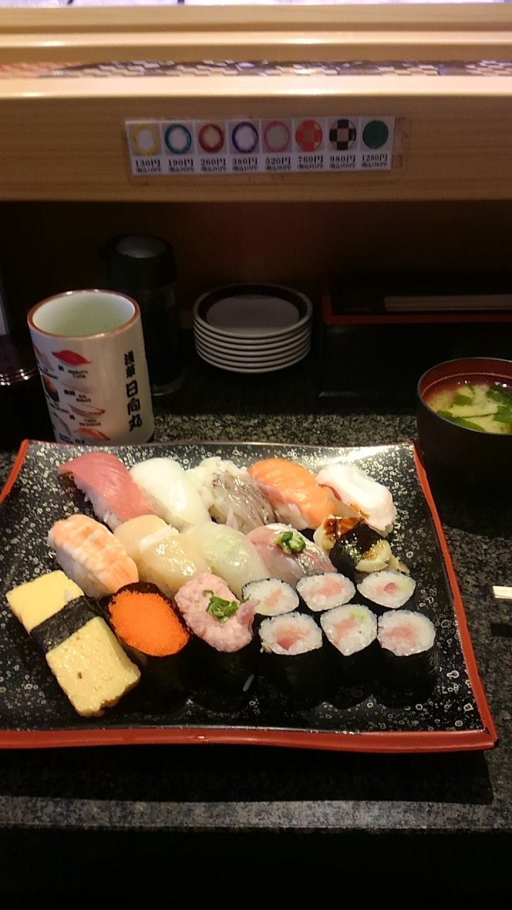 回転すしとありますが、実際はカウンターの中で、職人さんが握っています。ネタも新鮮で、特に平日ランチはお得です。ランチ『江戸前』は、握り10巻、巻物3種で800円(お味噌汁付)ボリュームがあって、お腹いっぱいになります。他に数量限定のバラ寿司などもあります。もちろんお好みオーダーも可能です。