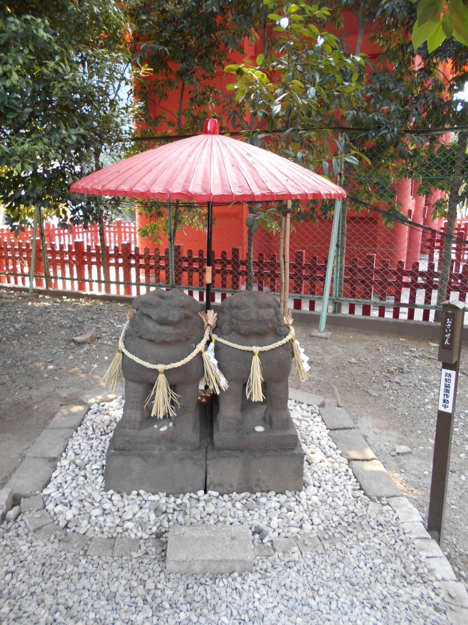 「浅草神社」のすぐ近く、鳥居を通って奥にぴったり寄り沿った2匹(?)の狛犬が立ってらっしゃいます。