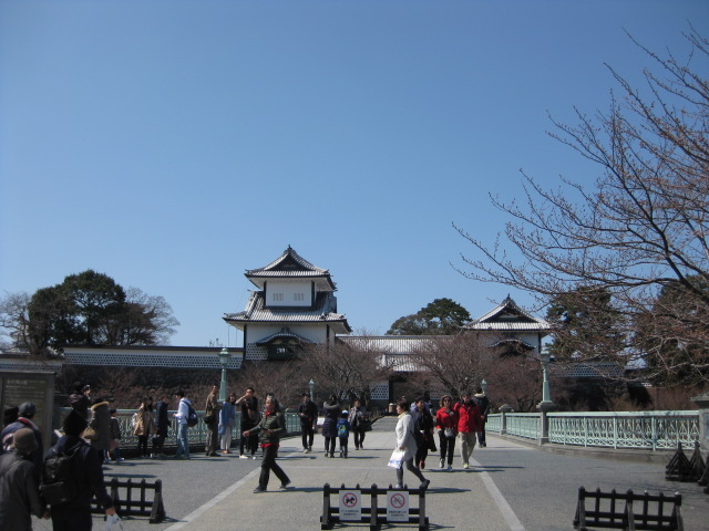 兼六園に行く際にすぐそばにある金沢城を訪れました。金沢城公園は広く緑豊かで、休憩できます。桜がまだ咲いていなかったので残念ですが、4月に入ると無料開園、ライトアップも楽しめると言うことで季節の良い際の散歩にもおすすめです。