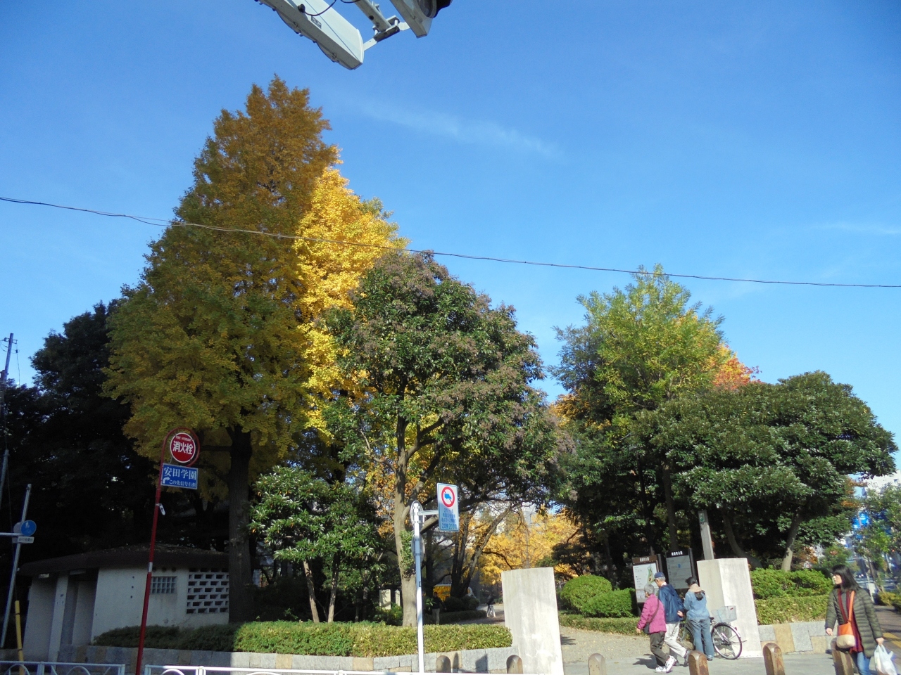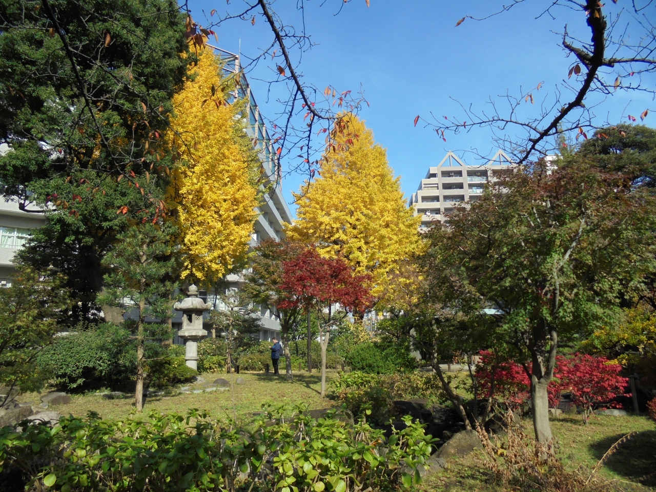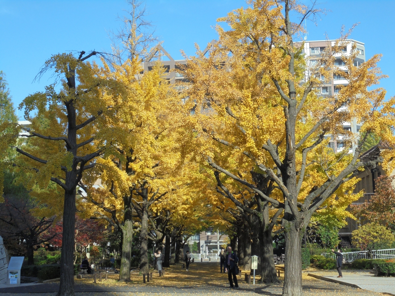 園内にはイチョウ並木があり、ちょうど黄葉が見頃。黄色の木々が澄み切った青空に良く映え気持ち良く散策ができました。