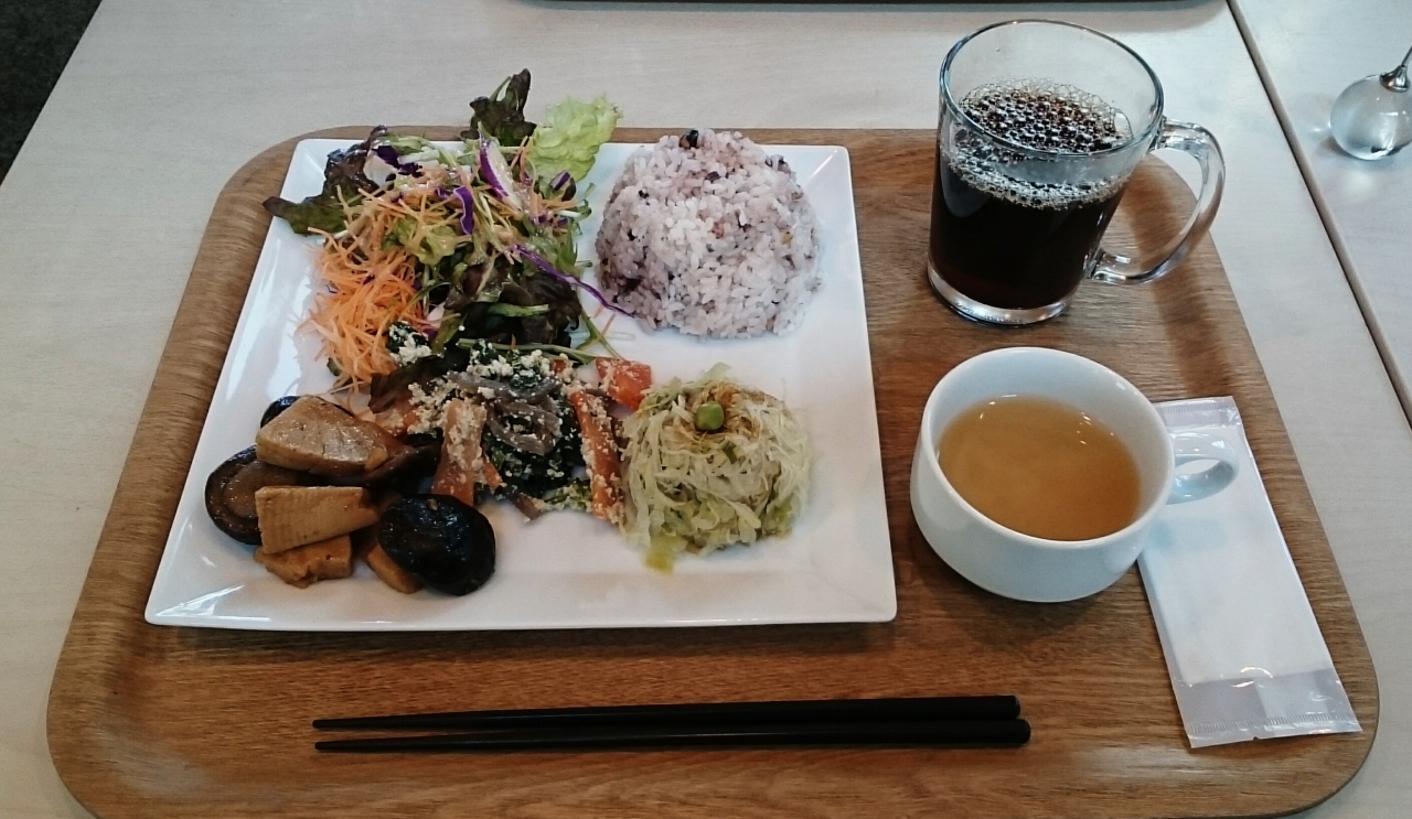 冷製デリ2種、温製デリ1種、十五穀米またはパン、グリーンサラダ、スープ、ドリンク付きで1000円のデリプレートランチをいただきました。(冷製デリ3種にすると1200円)