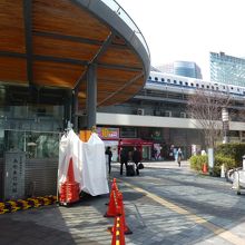 JR有楽町駅を降りてすぐの場所に「南町奉行所跡」の石碑があります。背後には新幹線が行きかう姿が見える場所です。