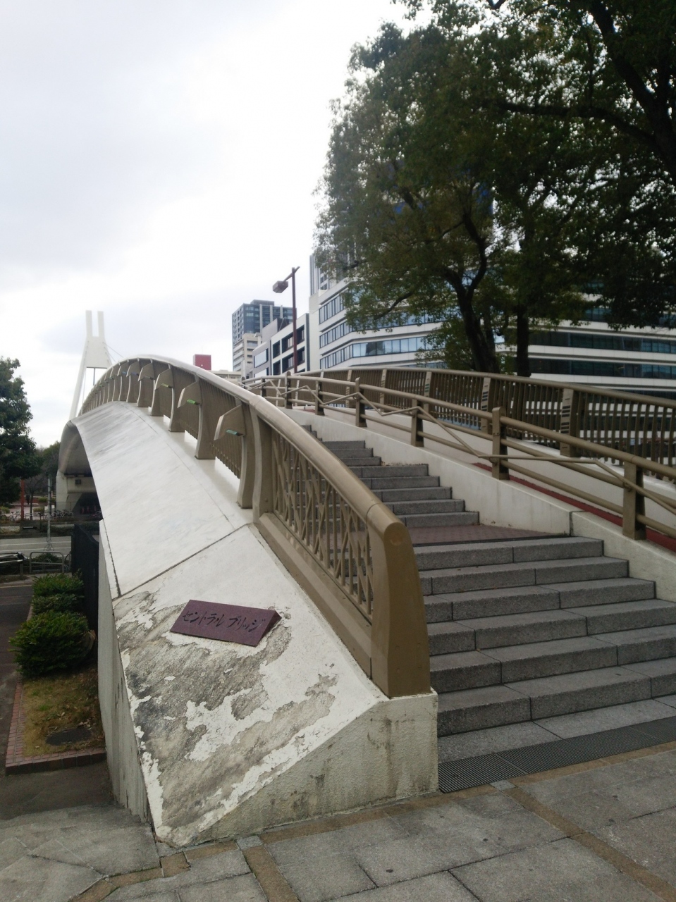 名古屋の中心地である栄から名古屋城方面に久屋大通り公園を散策していると、久屋大通りと桜通りが交差する辺りに架かる歩道橋です。特に、特徴がある橋ではないですが、橋の上から見えるテレビ塔などの景色は中々良いものです。橋のすぐ近くにはロサンゼルス広場もあるため、公園内を散策する際はこの辺りを散策するのもオススメです。