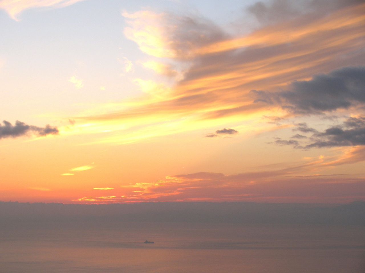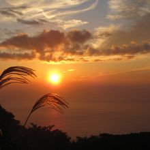 ・駐車場からの夕焼けも絶景で、富士山も見えます。