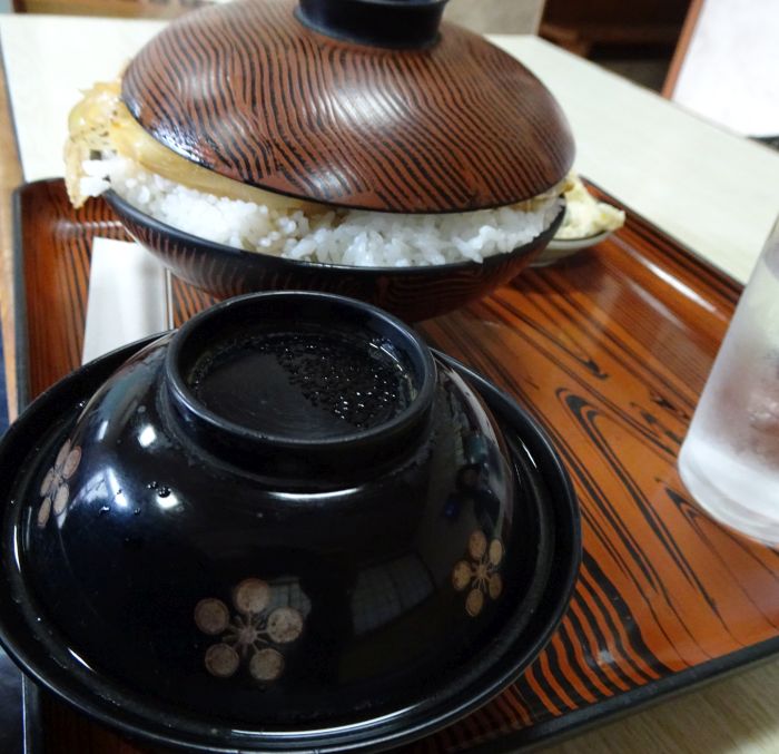 カツ丼を食べましたが、ご覧のようにご飯が多すぎて、載っている具が少なく感じます。カツと玉ねぎのちりばめ方もバランスが悪いですね。