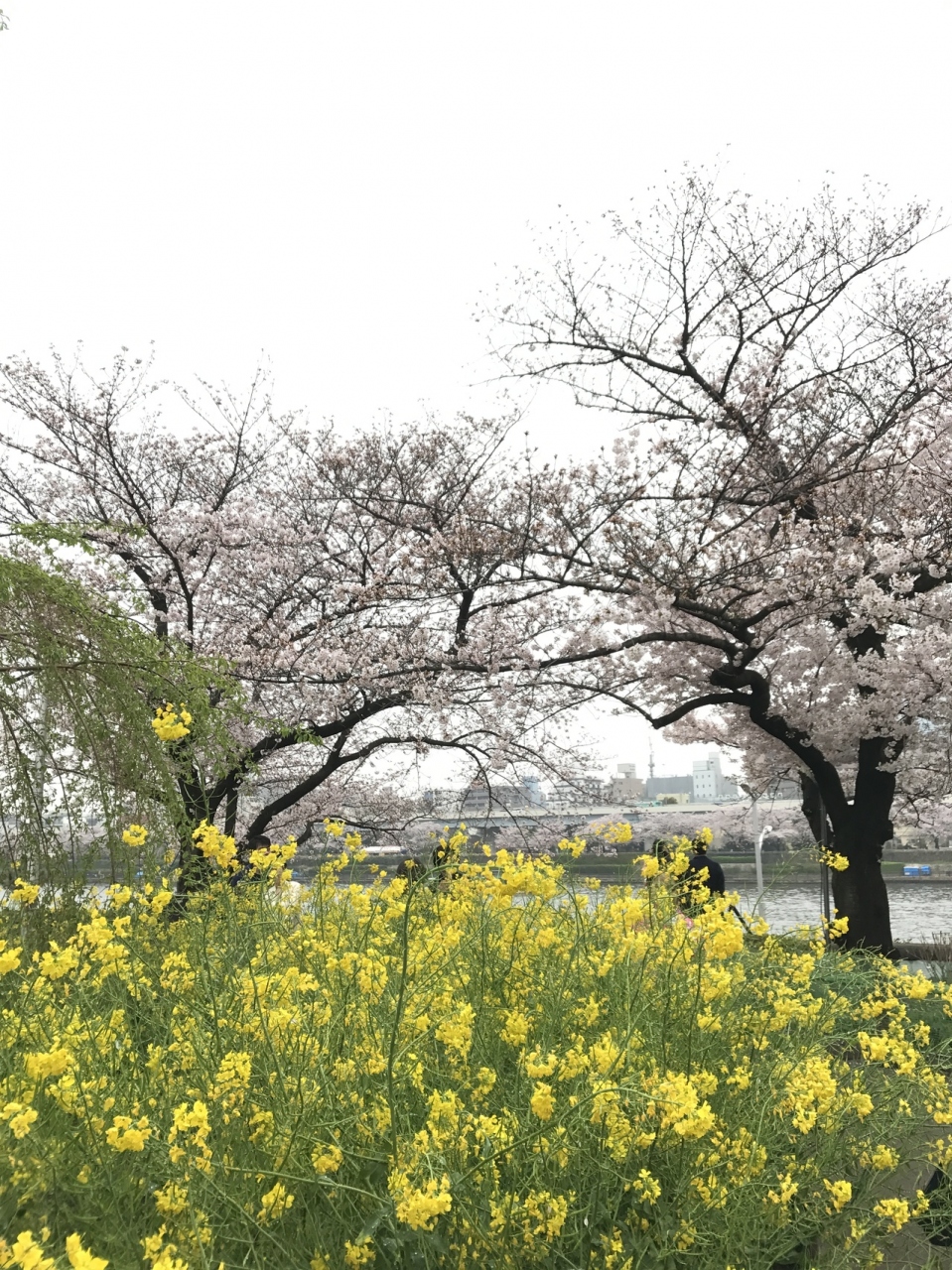 また、一部花壇に菜の花が咲いており、とてもいい香りに包まれるとともに、開花が桜の時期と重なるため、ピンクと黄色の組み合わせが春らしくてとても素敵です。