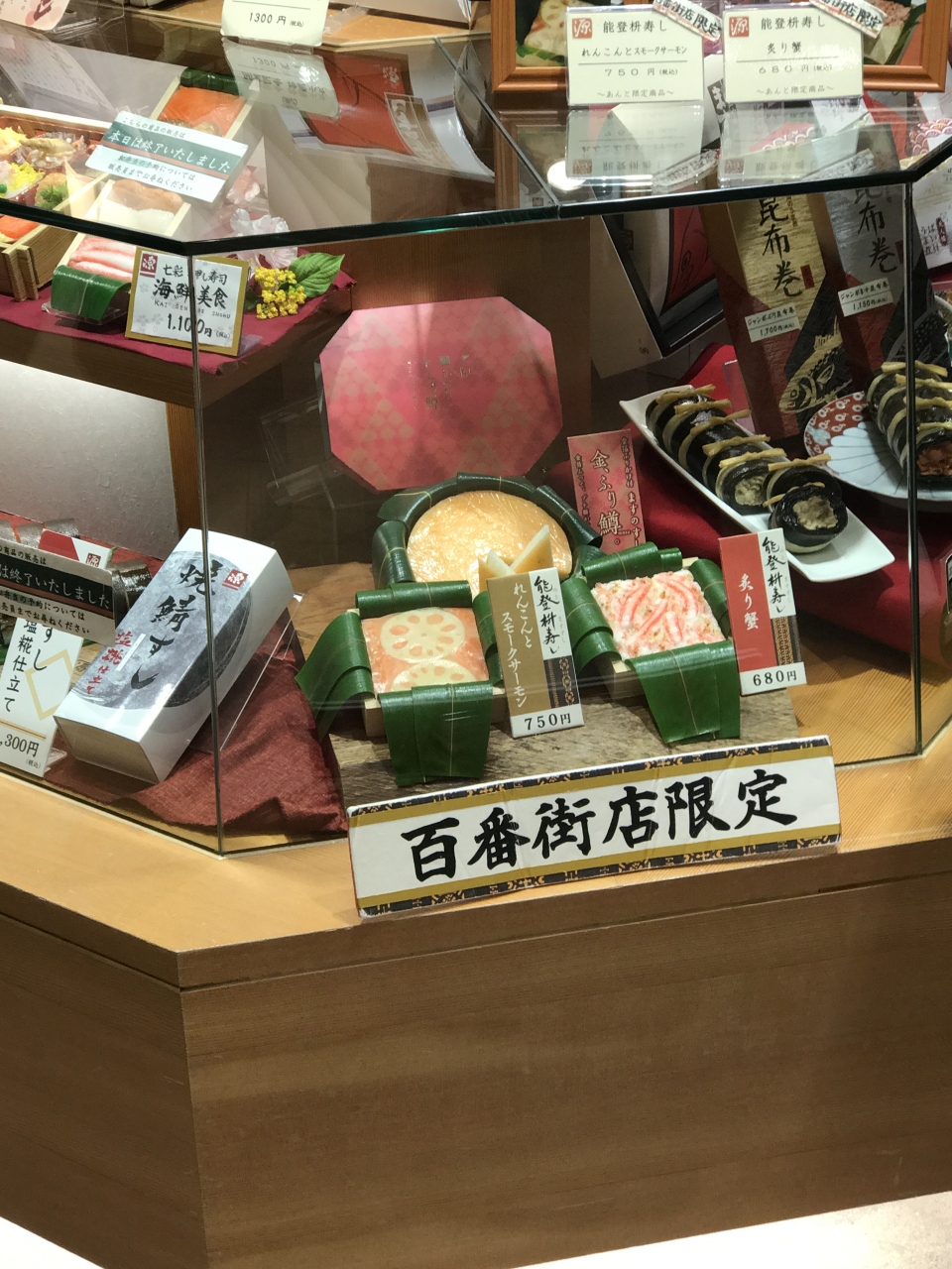 金沢駅の百番街にある、ます寿司で有名なお店です。「あんと」の入口付近にあります、金沢の百番街限定商品として、「れんこんとスモークサーモン」「炙り蟹」「金の鱒寿司」などがありました。れんこんとスモークサーモンを買ったのですが、これがまたうまい。サーモンがとろけてビールとよく合いました。富山の味ですが、金沢駅でも購入できるのが良いですね。