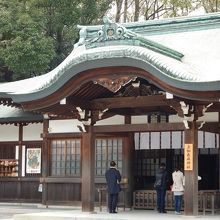 熱田神宮の正面(南側)の参道を入ってすぐ左手にあります。八剣宮のすぐ近くにあり、最初はここが熱田神宮と間違ってしまうくらいでした。