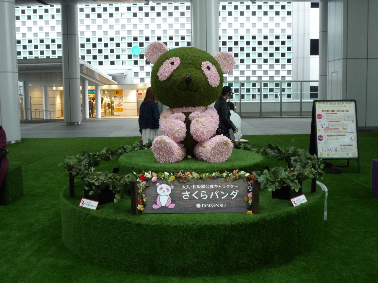 大丸松坂屋のさくらパンダなどのキャラクターが花に飾られていました。