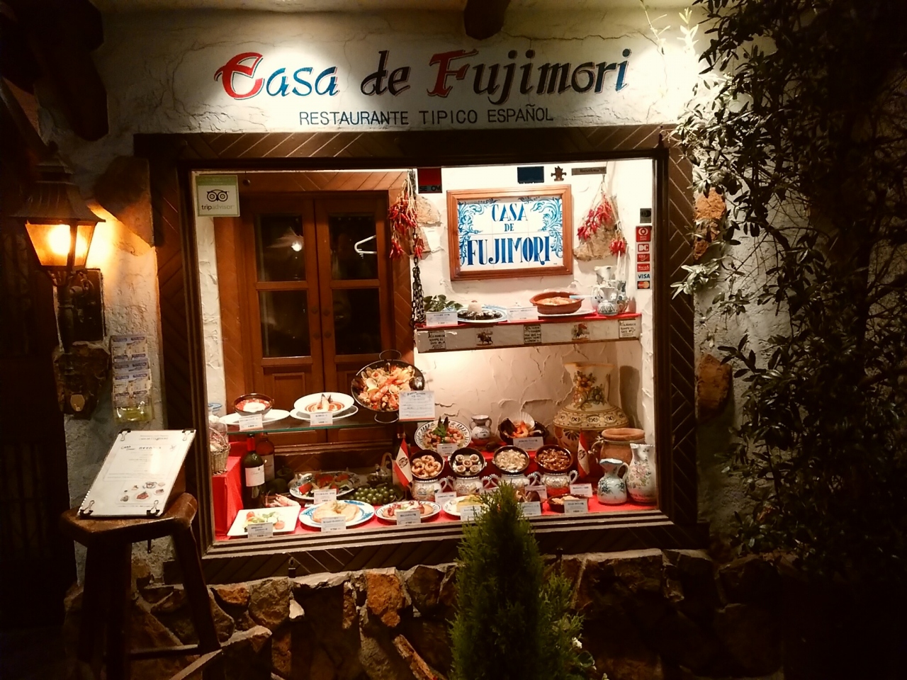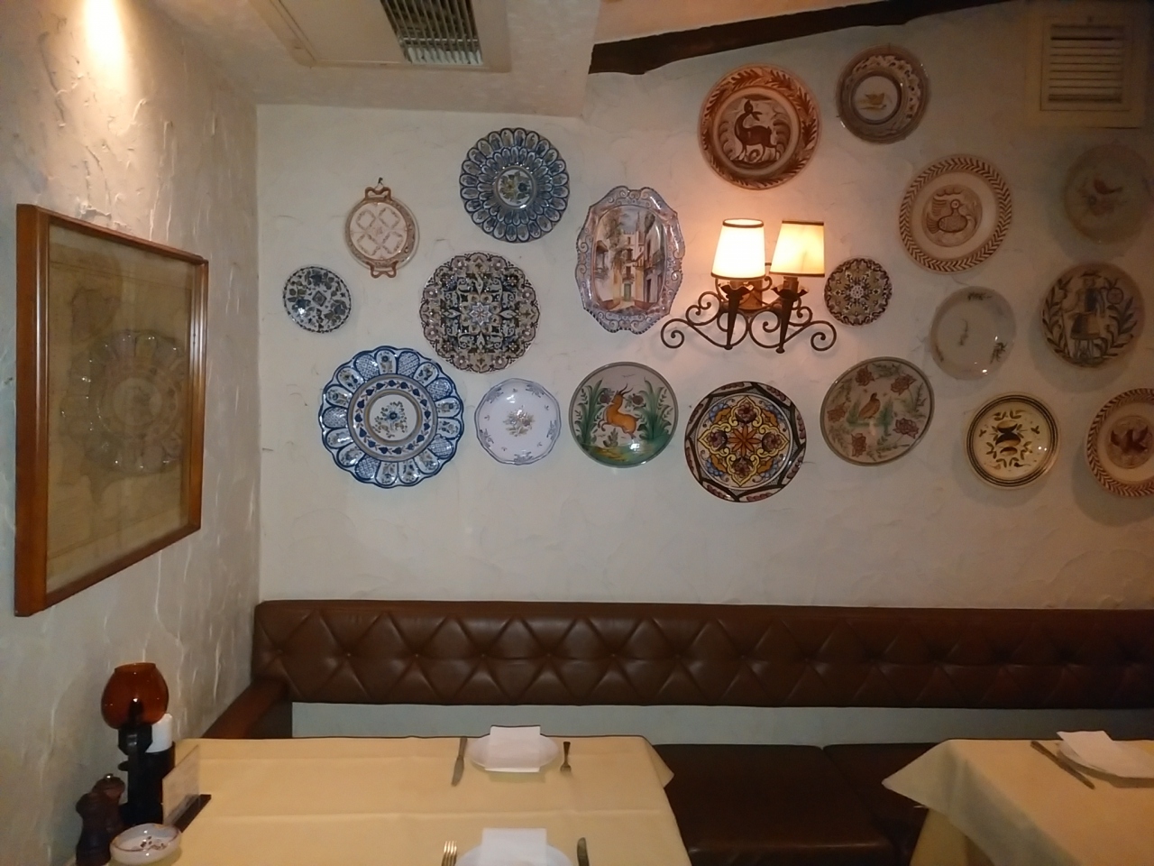 19時前にお店に入ったときはテーブルが空いていましたが、サラリーマン風の方やカップルの方々が続々と入ってました。あっという間にお店のテーブルは埋まってしまい人気の高さを実感しました。風情ある店内で、おそらくスペインモノと思われる食器が飾られていました。スペインらしい洞窟っぽい店内と少し暗めの雰囲気が良かったです。