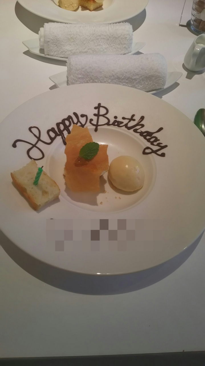 友人が事前にお願いしてくれていたようで、デザートが誕生日仕様になっていました。嬉しかったです。