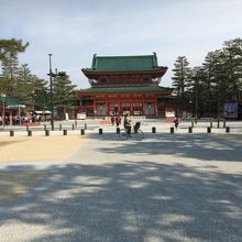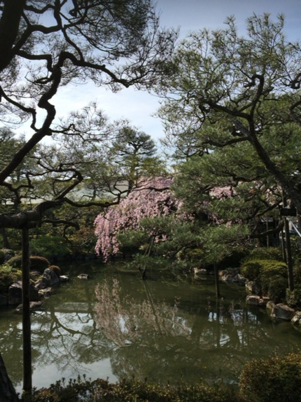 朝イチで平安神宮へ。広い、綺麗。白い砂利が、また葉っぱひとつ落ちていない気持ち良さ。両脇でブォーという音。はぁー、なるほど、ブローでお掃除してらっしゃる。さすがです。600円で入る庭園の紅枝垂れ桜が有名だというのを、何も知らずに来ました。蕾で残念。濃い紅の色が全部開いたら、なんと、雅な事でしょうね。もう1回来なくっちゃ。