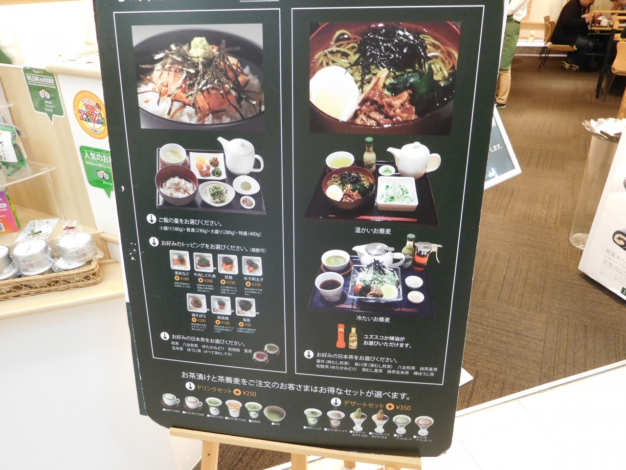 イムズの地下1階にある、日本茶のカフェです。抹茶やほうじ茶のドリンクやデザートのメニューが沢山揃っていて、お茶漬けや茶蕎麦のお食事メニューもありました。先に注文と会計を済ませ、席で番号札が呼ばれるのを待つ、半セルフサービススタイルでした。お蕎麦は少し時間がかかりましたが、軽く食べるのにちょうど良い量で美味しかったです。いろいろ種類があるので、また他のメニューも食べに来たいと思いました。