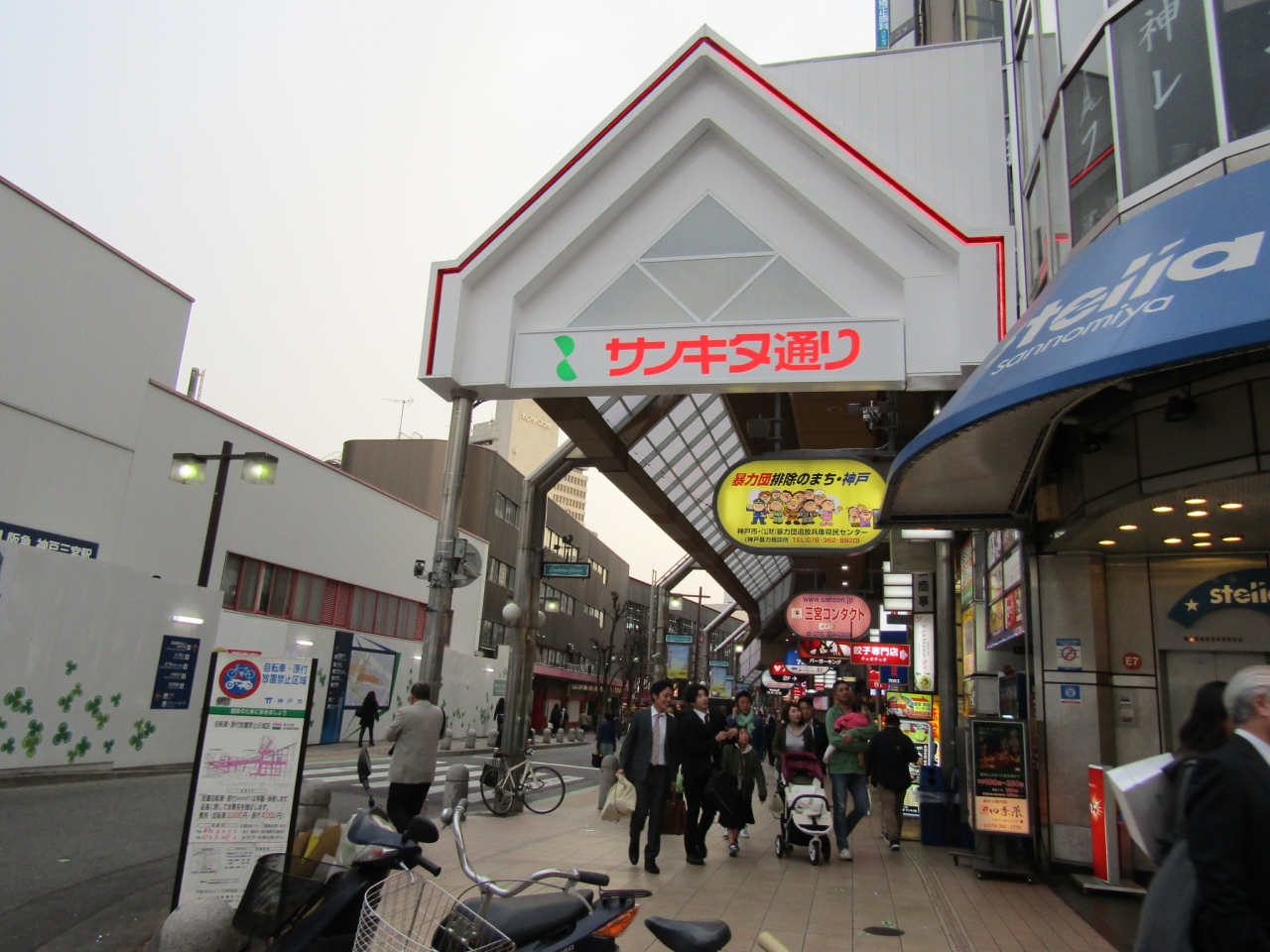 阪急三宮駅の北側すぐ、線路と平行に並んであるアーケード街です。繁華街です。初めての人は港町神戸のイメージとのちがいにびっくりするかも?ステーキ店、カフェ、ラーメン店、チケットショップ、ゲームセンター、カラオケ、ドラッグストアなど・・。