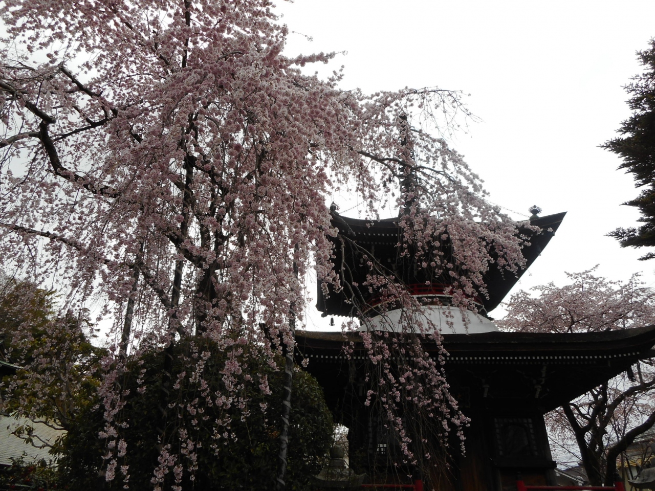 多宝塔が優雅な姿で桜の時期は塔を前に桜の花が美しい。