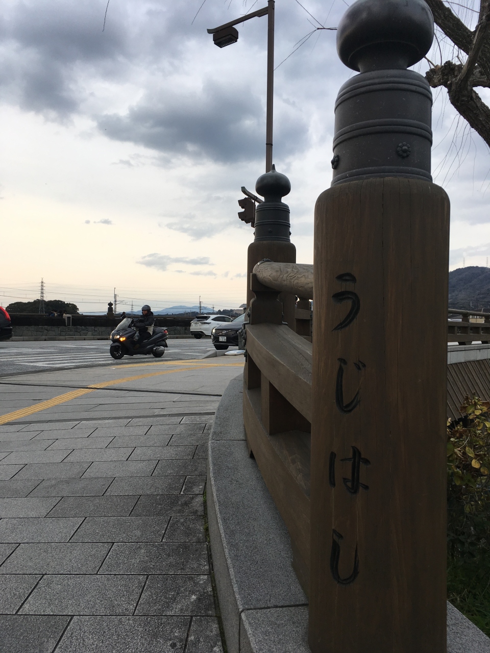 いまは新しい橋になっていますが、この宇治橋は日本三大古橋のひとつとなっています。材質などもかなり気を使っていて新しい橋とは思えないような作りです。歩道も広く、歩きやすいです。京阪の駅から宇治の繁華街に向かうのに使うので、土日は交通量が多いです。