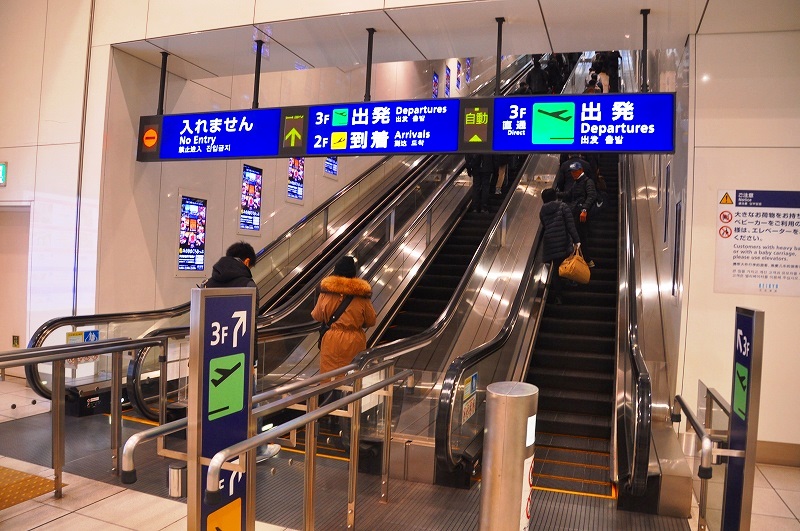 羽田空港へ浜松町から向かう場合、モノレールもあるが、大江戸線と乗り継ぐ時、歩く距離が短く、エスカレーターも使えるので、私の場合、京急に乗っていくことが多い。国際線を使う日は、この駅で降りる。ここまでくれば、モノレールでも京急でも便利さに違いはないが、京急はホームを降りると、すぐ改札があって、その正面がエレベーター、エスカレーターの乗り場。両方あるので、あまり込み合わないのがこの駅の特徴だろう。