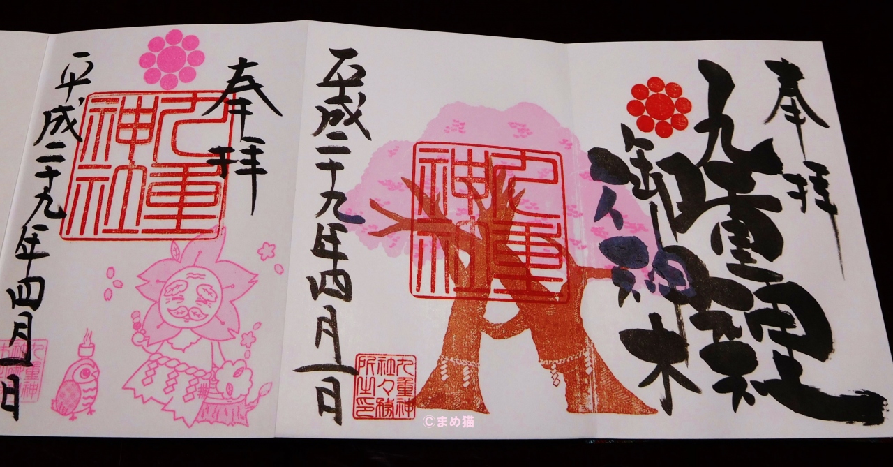 季節ごとに色が変わる御神木の見開き御朱印がある
