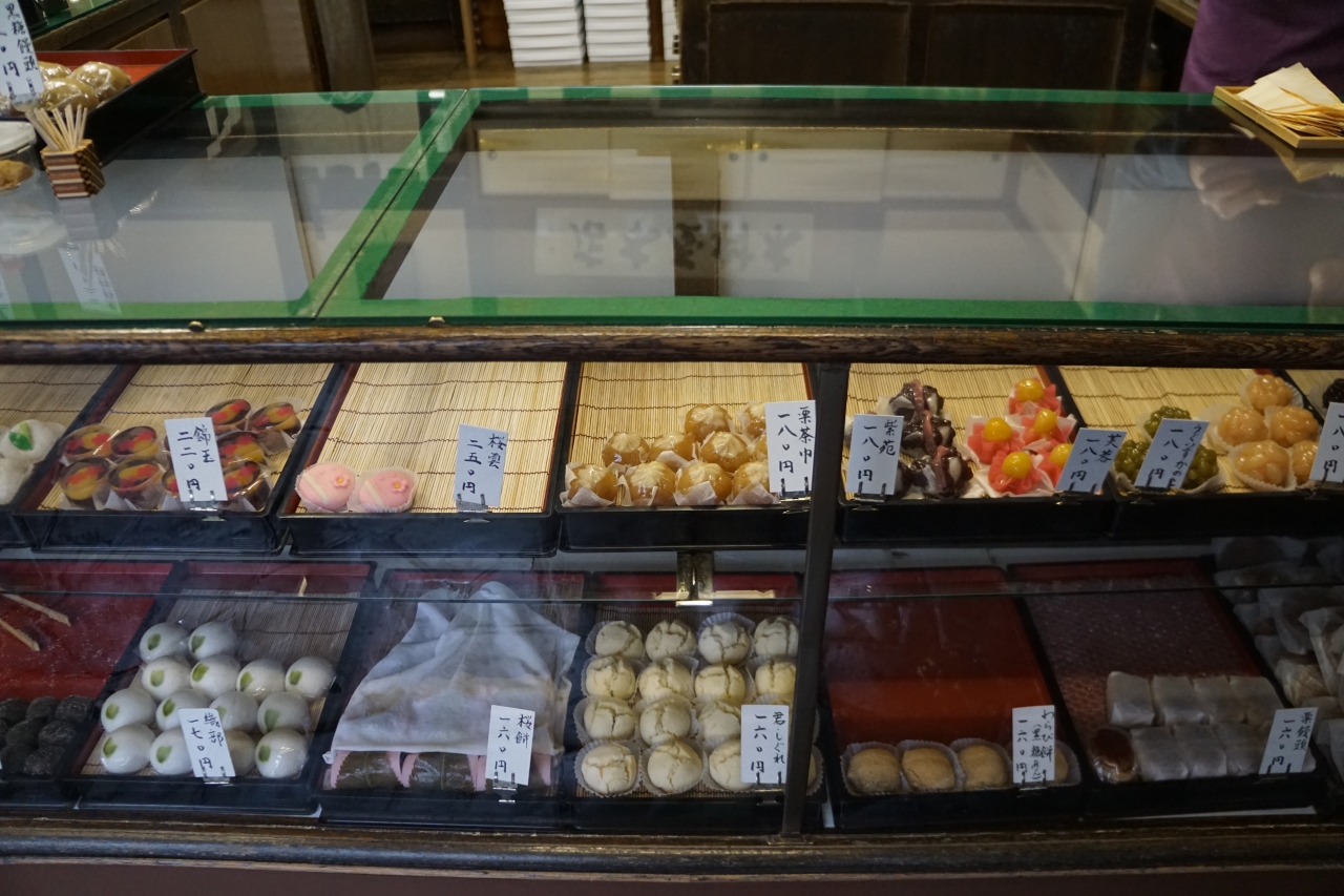 木村屋は、水戸駅前の大通り沿い。外観も老舗の和菓子屋さんですが、店内に入るとこれがまた一段といい。ショーケースが腰の高さくらいまでしかない低いものなので、店の奥がよけい広く感じられる。年季の入った雰囲気もたまりませんね。