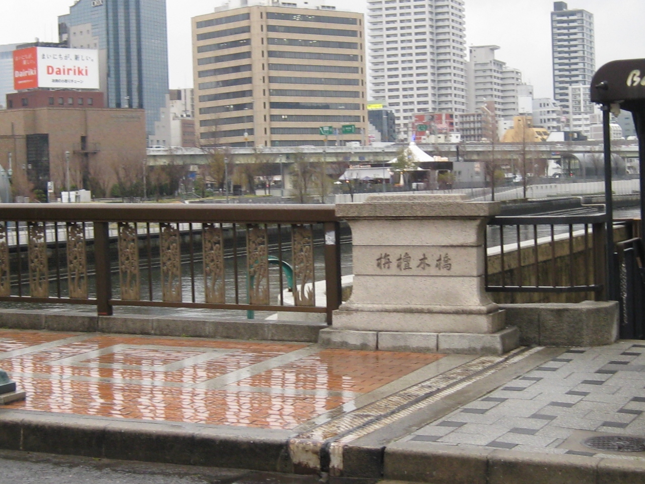 中之島の公会堂の横から北浜に向かい土佐堀川に架かる橋。浪速名橋50選にも選ばれているチョット小さな(全長86.4m)風情ある橋です。川上下には淀屋橋、難波橋が架かっておりビジネスの喧騒とレトロな建物の雰囲気とが混ざり合っている場所に架かる橋です。