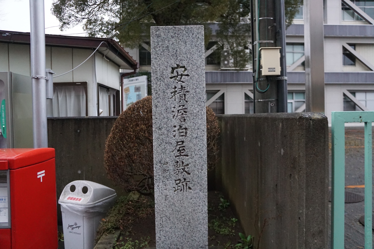 藤田東湖生誕の地そば、JA会館の前に建つ安積澹泊屋敷跡と書かれた石柱ですが、これが黄門様に従った格さん助さんの格さんのことだというのはすぐには分からないかも。