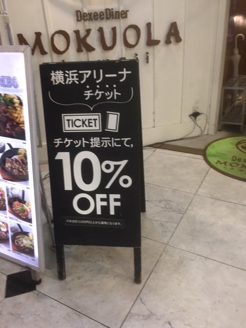 こちらのお勧めは、新横浜でイベントが催されたとき、チケットをもっていくと割引サービスがあること。私が行った当日は、横浜アリーナでコンサート、日産スタジアムでFマリノスの試合があったので、そのいずれかのチケットで、割引サービスが受けられる店舗がありました。