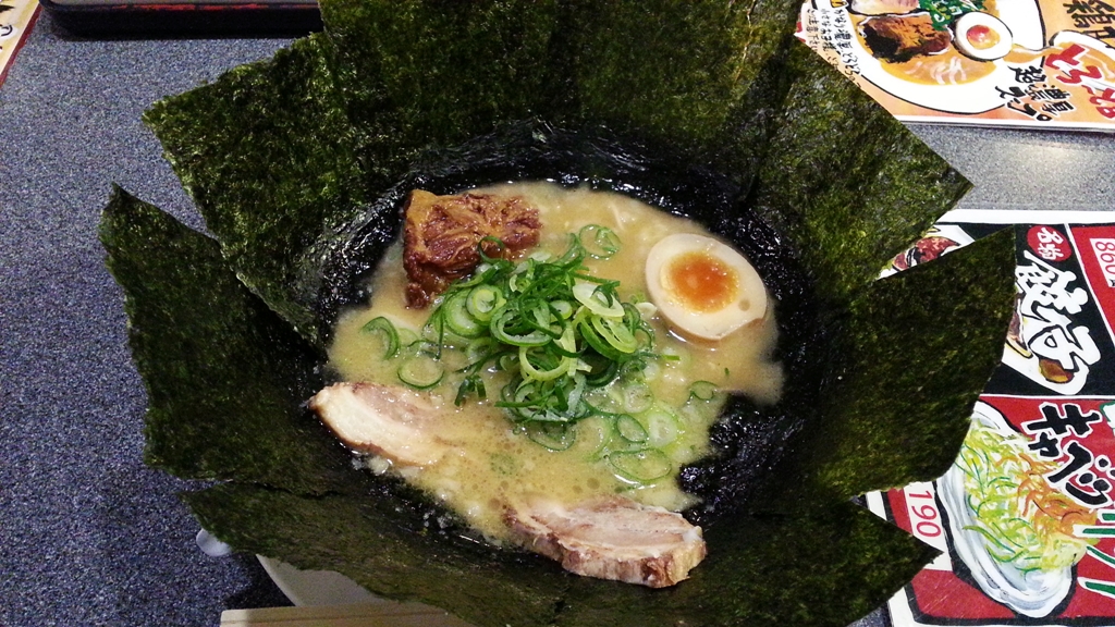 夫はふくちあんラーメン、自分は「海苔盛りラーメン」をいただきました。これでもかというくらい丼の周囲をぐるりと埋め尽くす海苔の堤防。トロトロチャーシューと煮卵も美味しかったです。駅南町の角地で駐車場も三か所あって便利。