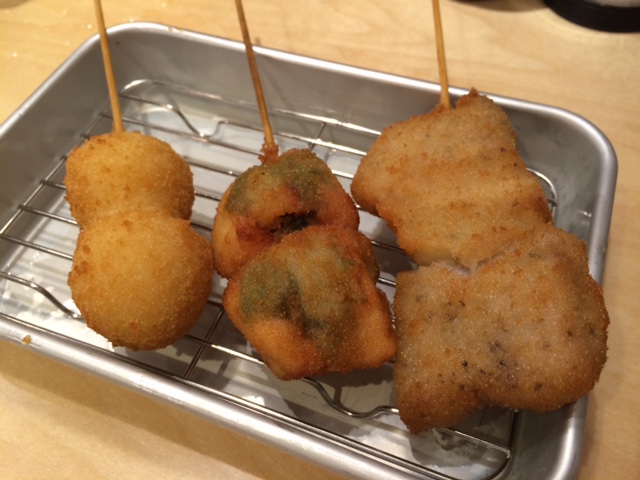 串揚げは衣が薄くサクッとしていて美味しかったです。1本100円からと値段もリーズナブル。