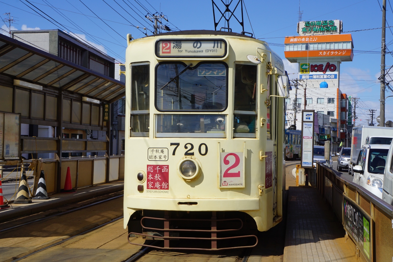 函館市電は、函館駅前からだと湯の川温泉方面と十字街経由で谷地頭または函館どつく前方面に向かう路線。いろんな電車があって、けっこうカラフル。次はどんな電車が来るのかなとか楽しみになるようなところがあって、観光地函館の雰囲気にはとても合っていると思います。