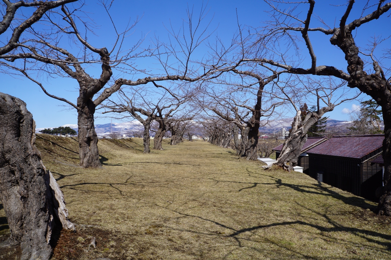 五稜郭公園は、稜堡式の城郭、五稜郭を整備した公園。五稜郭タワーからだと全景が分かりますが、公園を歩いているだけでは全景はよく分かりません。しかし、濠を臨む土塁の上を歩くと土塁に囲まれた地形がそれなりに感じられる。桜並木もいい感じだし、石垣の城にはない独特の楽しさがあるように思いました。遠くに雪で白くなった山も見えて、冬の景色もなかなかです。