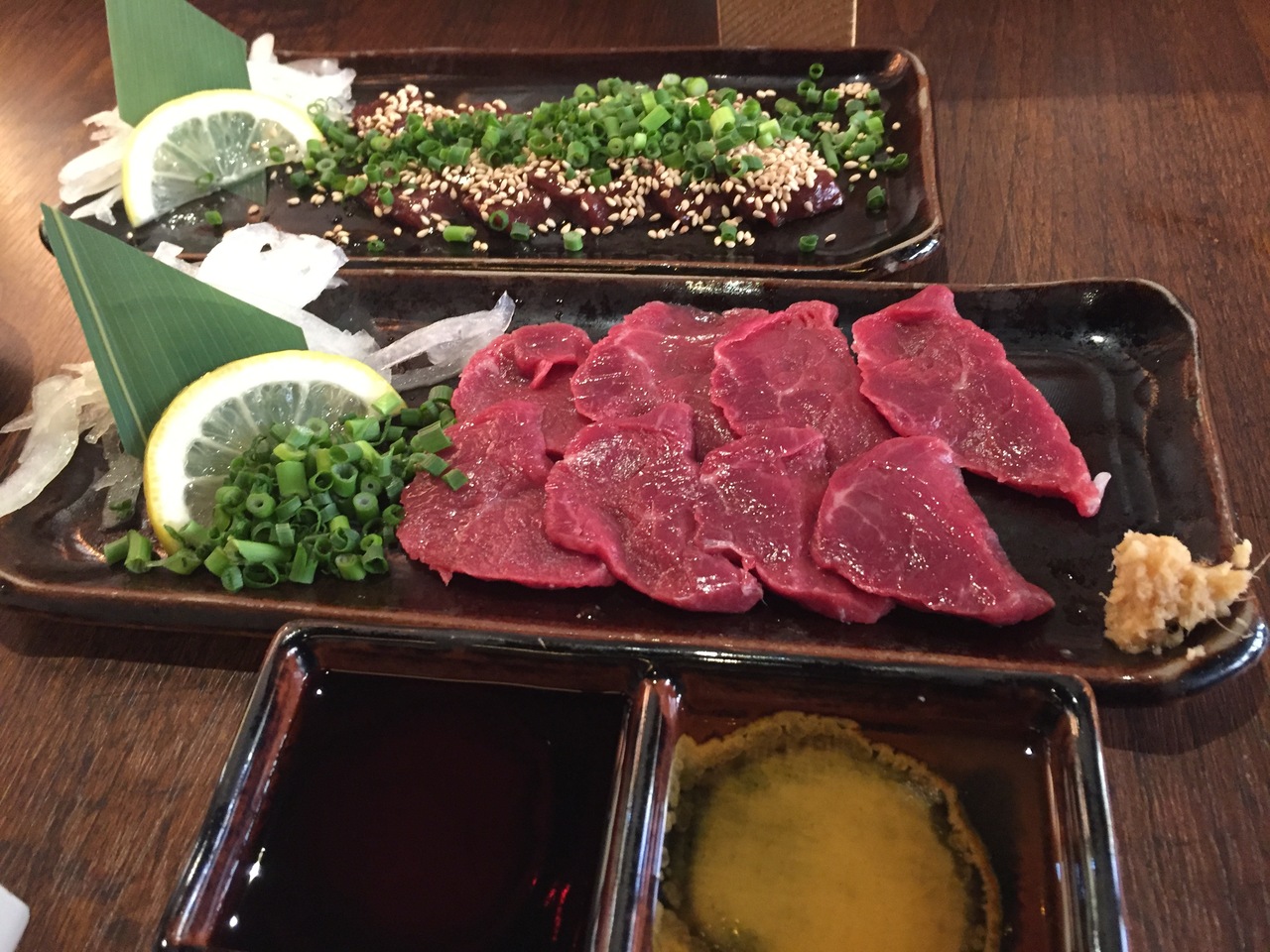 馬刺つきのコースに、プラスでどうしても食べたかった馬のレバ刺を注文。