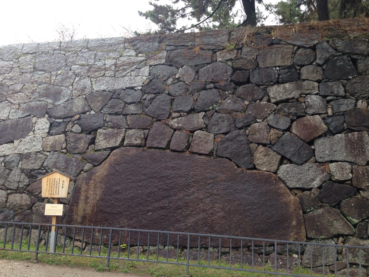 加藤清正が積み上げた石で 石垣の石材の中で一番大きなもの。その大きさは周りの石と比べると一目瞭然、軽自動車位ありそう。