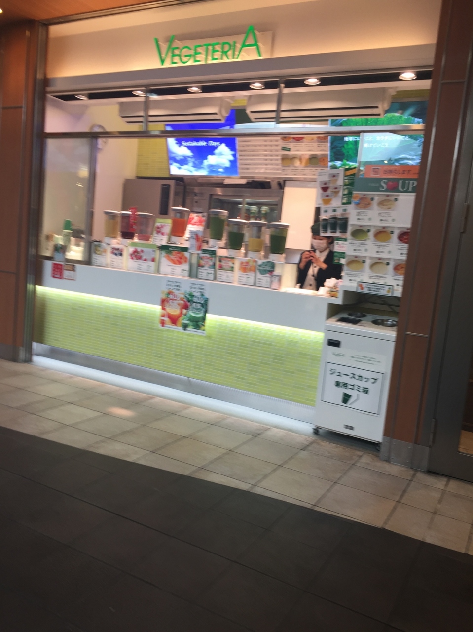 上野駅エキュートの中にあるフレッシュジュースのお店です。少し長く電車に乗るので飲み物が欲しいと思い購入しました。見たからにまずそうな緑色のジュースもありますが苺などおいしそうなものも多くどなたでも楽しめると思います。カップのサイズが選べるのも嬉しいです。