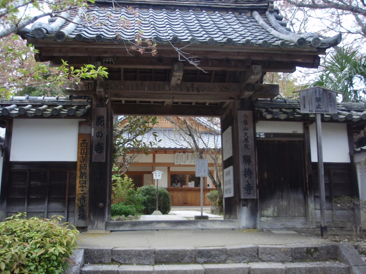小塩山頂近傍の御陵の谷、少し東のNTTの敷地内にあるNの谷、更に東にある炭の谷カタクリ群生地には、薄いピンクあるいは濃いピンクの花のカタクリが広い範囲にわたって咲き乱れるほどに咲いていました。(何れの群生地とも動物の食害から守るために網で囲まれています)。シロバナカタクリも3輪ほど見られました。こんなに多くのカタクリ群生地を見たのは栃木県の三かも山以来です。おまけにギフチョウも見ることができました。舗装道を緩やかに下り、勝持寺に着きました。寺内ではソメイヨシノは終了していましたが、シダレサクラと西行桜が満開できれいでした