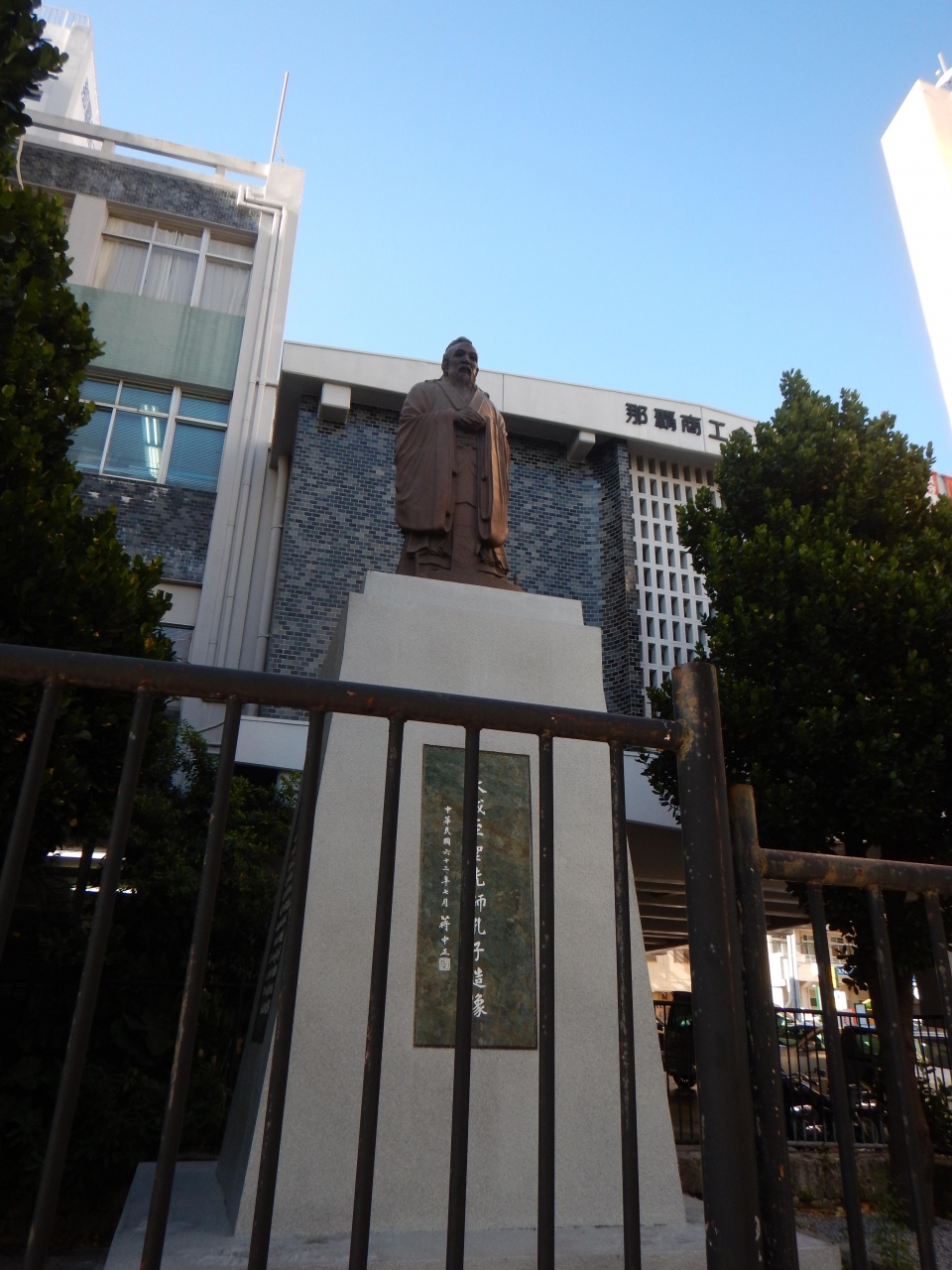 国道58線沿いで久茂地交差点と泉崎交差点の中間ぐらいのところに孔子像がありました。今までにも孔子像の前を歩いていたはずなのですが、気に止めたことはありませんでした。孔子像は台湾政府から贈られ、昔ここに久米の孔子廟があった事を記念して建てらたそうです。近くには西鉄リゾートインなどいくつかのホテルもあるので、宿泊した時は行ってみると良いと思いました。