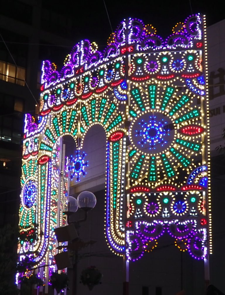 ちょうど点灯の時刻に合わせて行列に並んでいると、盛り上がります。ただし、カウントダウンのようなものはないので、突然点灯となります。一方通行で進んでいきますが、歩道の脇に寄ると、少しは停止して写真を撮ることができます。
