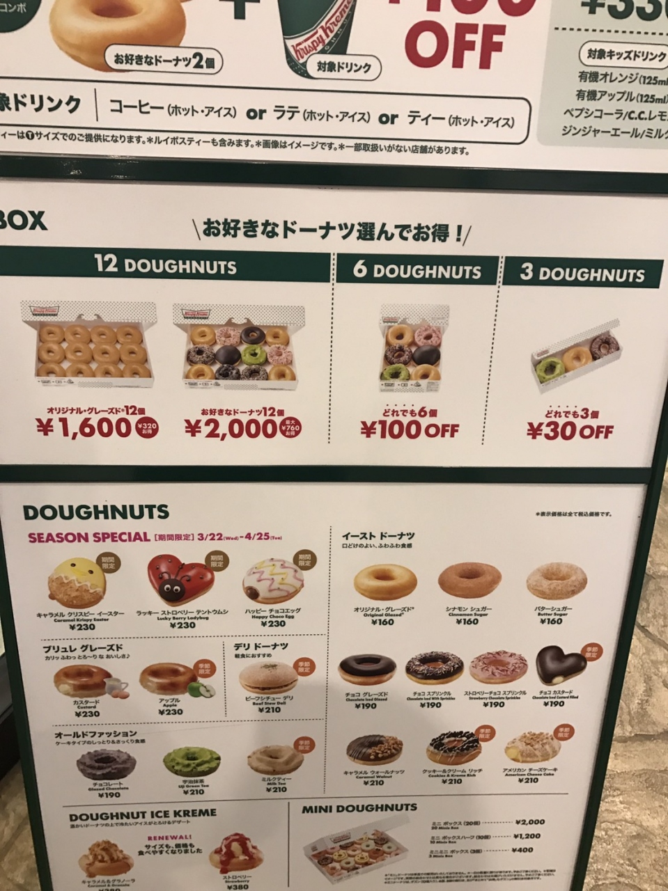 ららぽーとのクリスピードーナツハート1Fにあり駐車場からすぐなのでとても便利です。店内で勿論食べれますよ~イースターが近いので限定のドーナツ、とっても可愛いです!日本に上陸してしばしたちますが最近円高になっているので値下げしてもいいかなあなんて個人的には思ってしまいます!12個チョイスパックはお勧めです。