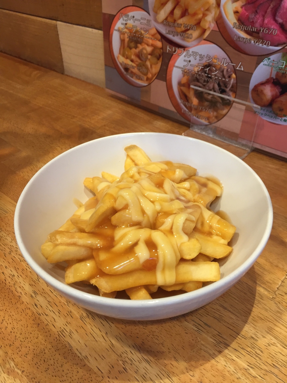 下北沢の駅から歩いて少しのところにあるカナダポテトの専門店です。普通のフライドポテトにグレービーソースがかかっていてとてもおいしかったです。グレービーソースはあっさりめでいくらでも食べれそうでした。イートインスペースは少しだけあるので混んでいなければ座って食べることができます。