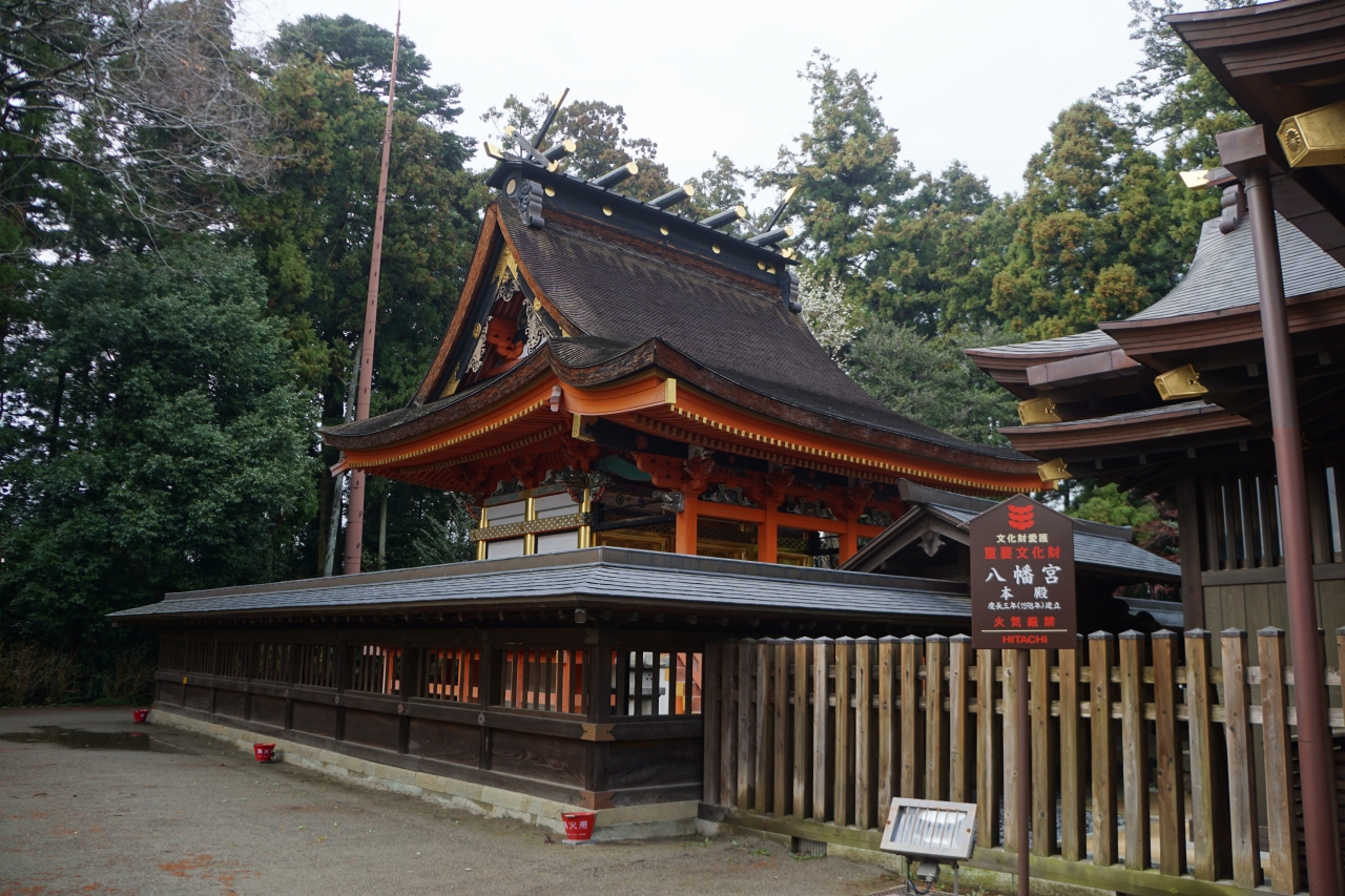 水戸八幡宮は、ロマンチックゾーンの一番西。八幡宮は武家の神様だし、源氏にゆかりが深いので水戸にあるのは当然という感じもしますが、現在の本殿は江戸氏を滅ぼして新たな水戸城主となった佐竹氏の時代に作られたもの。傷んだ感じはまったくなくて、美しい姿が印象的です。