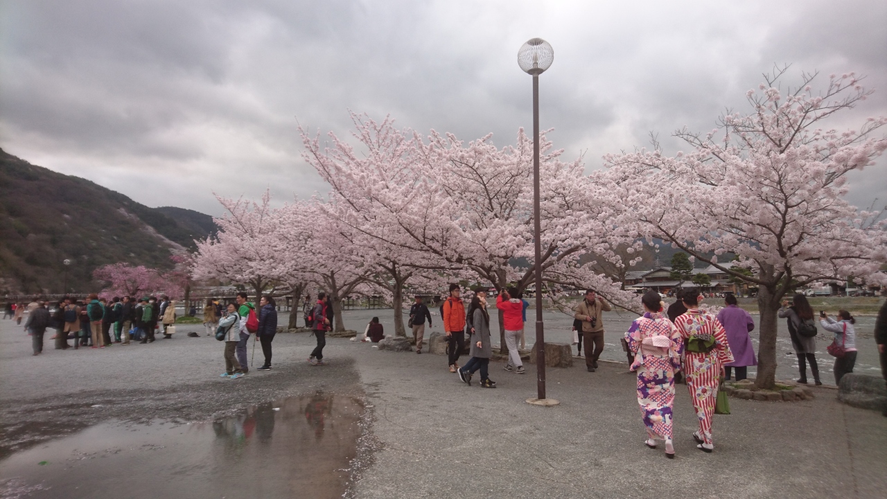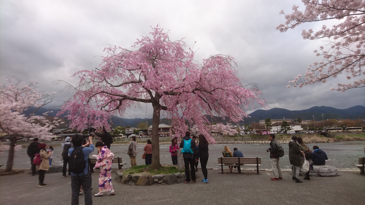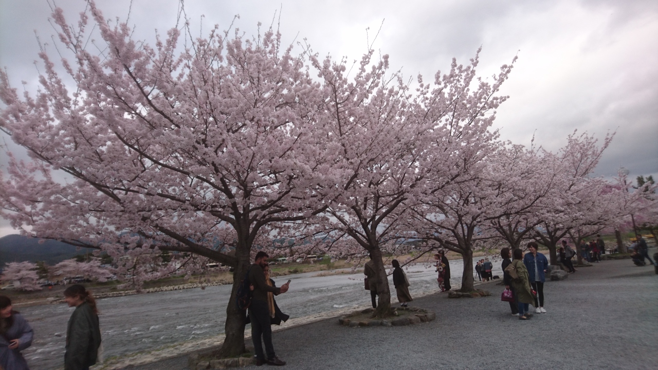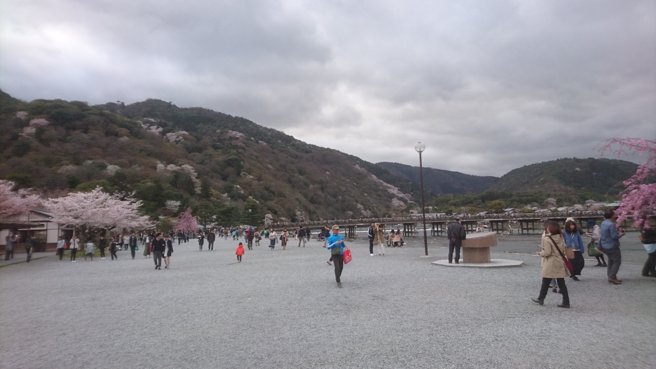 また、嵐山公園から見る嵐山も桜が満開になっていたので山の一部が薄いピンク色になっていました。見るものを虜にする美しい桜だと思いました。