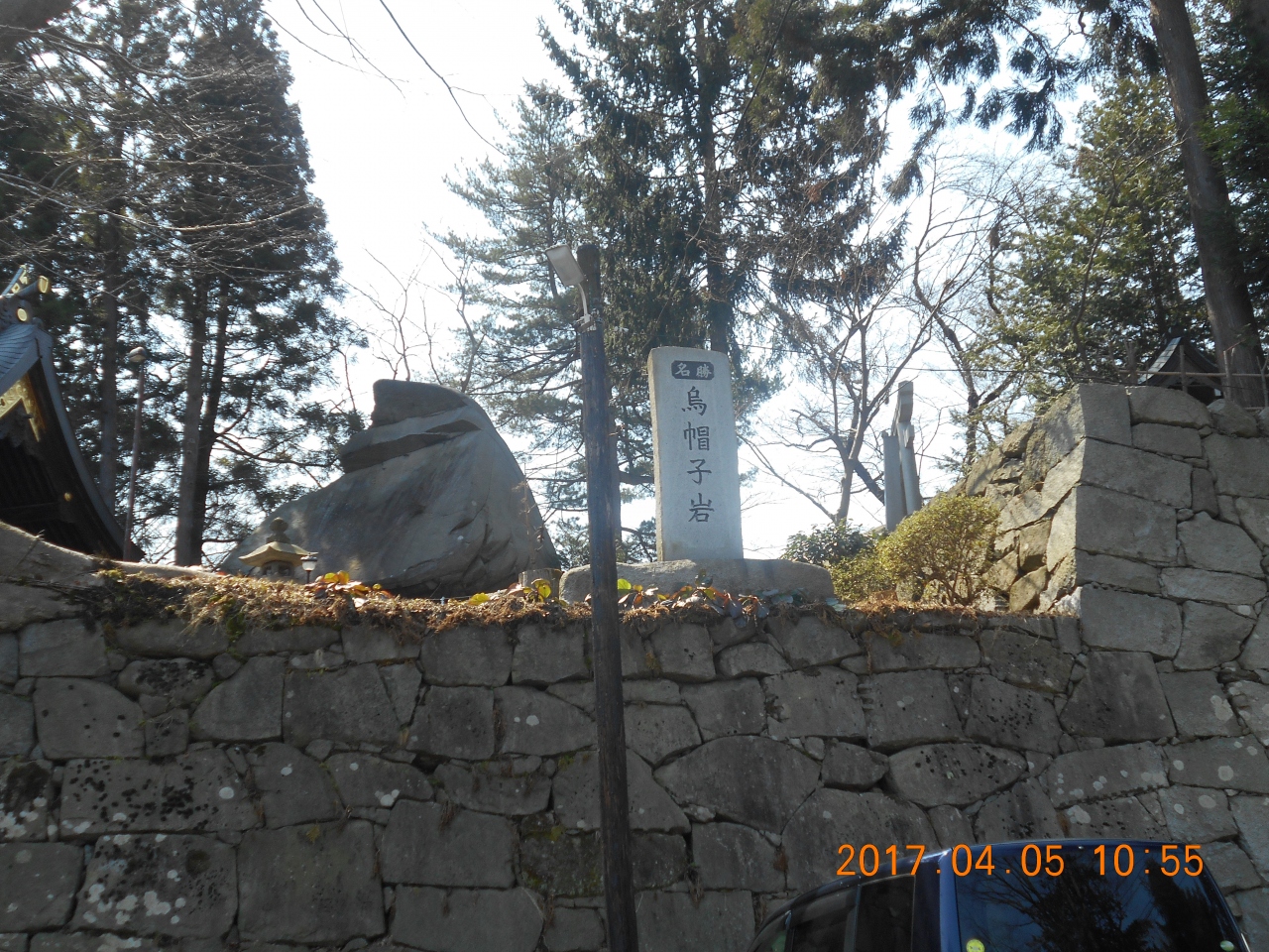 桜山神社の入り口からすぐに見えますが 階段を上がっていかないと 近くには行けません。あまり大きくて 全体を見るにはかえって下から見たほうが 烏帽子の形がよくわかっていいかもしれません。もっと小さい物を想像していたのでちょっと驚きました。