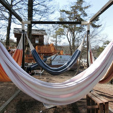 いくつかハンモックがあり、利用できます。カフェは良心的な価格でお茶や軽食がありました。