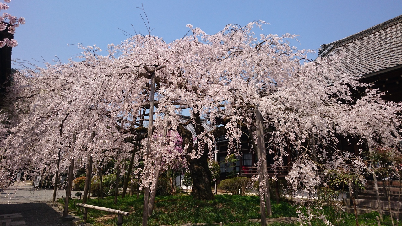 紅葉も桜もきれいですが、今回は桜の季節に2度目の訪問です。前回は朝NHKの中継があったばかりだったので大渋滞していましたが今回は静かでした。山科駅から徒歩で緩やかな上り15分ほど。階段を上らず坂を駐車場方向に上っていくと楽です。駐車場からは大垂れ桜は直ぐ。今年は以前より花は少な目でしたがどっしりとした姿は貫禄があります。近くの山科疎水と一緒に花見をしている人が多い。