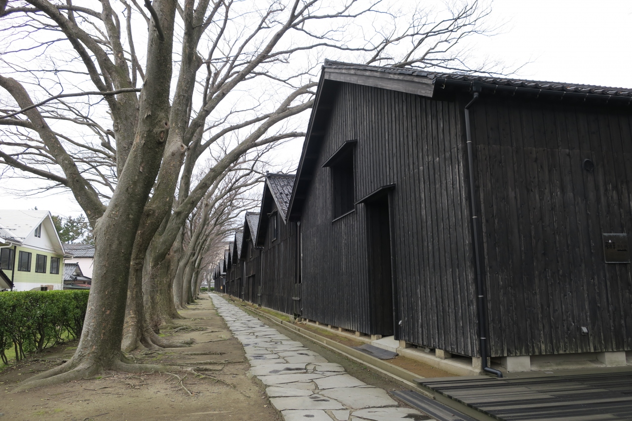 庄内米の倉庫として使われていたところを、観光用に改良して、博物館、土産物屋、レストランなどになっているところです。広い駐車場があり、観光バスも来ていました。
