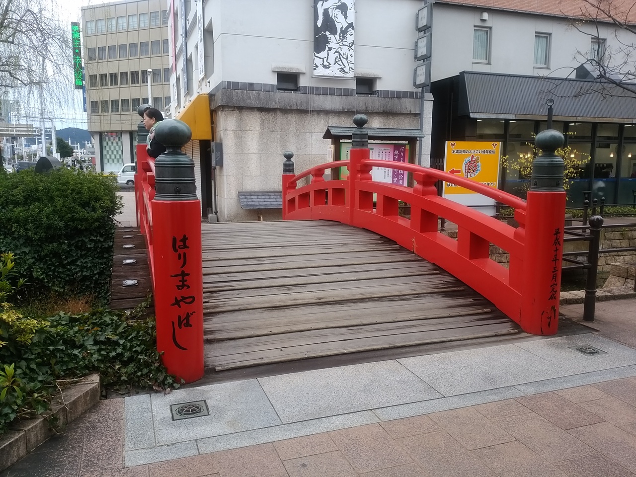 宿から近かったので朝食後に駅前観光と一緒に散歩を兼ねて行くと、早朝にも係わらず10人位観光客が見物していました。宿にもはりまや橋とそっくりの橋がありましたが、単なる赤い橋ですが高知に来ると話の種にも見ておくべきだと思いました。
